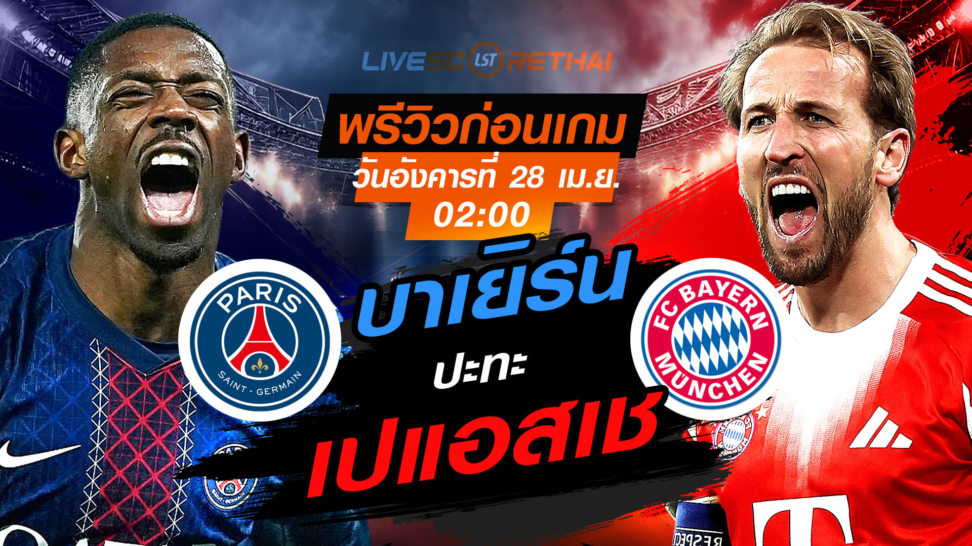 พรีวิวฟุตบอล ยูฟ่า แชมเปี้ยนส์ ลีก รอบรองชนะเลิศ : เปแอสเช -vs- บาเยิร์น วันอังคาร ที่ 28 เมษายน 2569 เวลา : 02.00 น.